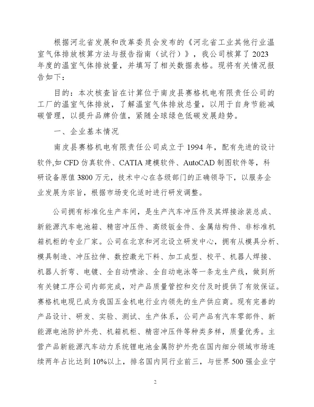 賽格機電有限責任公司溫室氣體排放報告